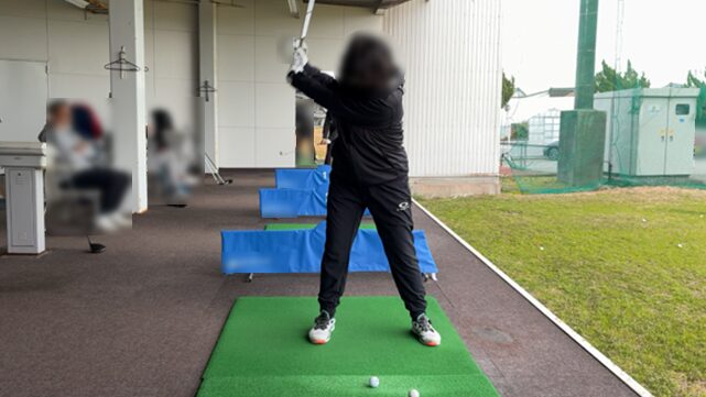 キャリー50ヤードでも、フォローの大きさはバックスイングの2/3程度になります。